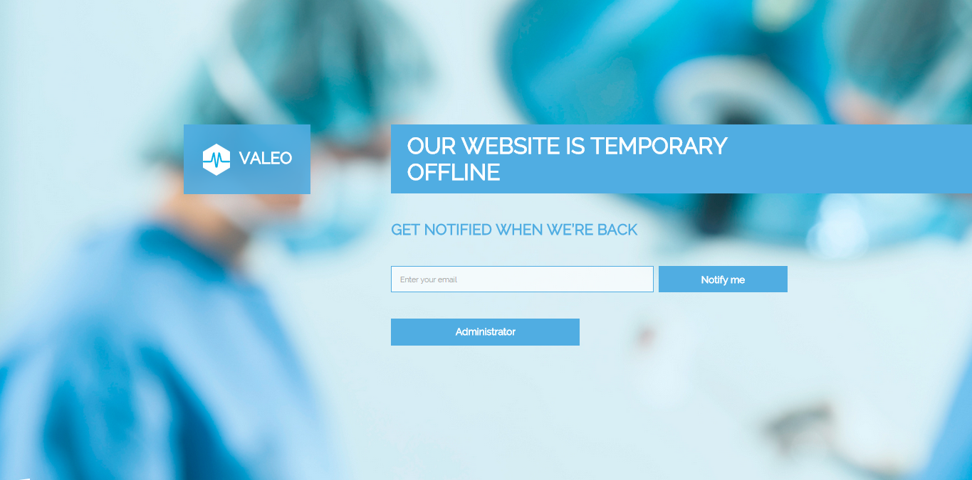 MValeo Theme have a minimal, creative and responsive HTML5 offline page. Enter your offline message in settings.
